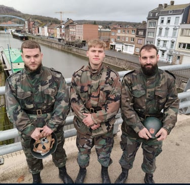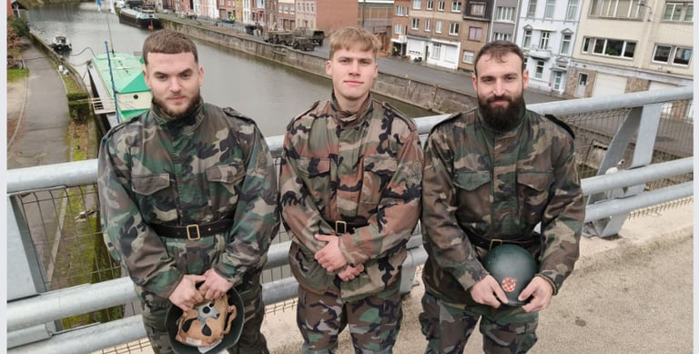 Benoît, Thomas et Florian, 3 figurants belges qui interprètent des militaires croates. © J.M.